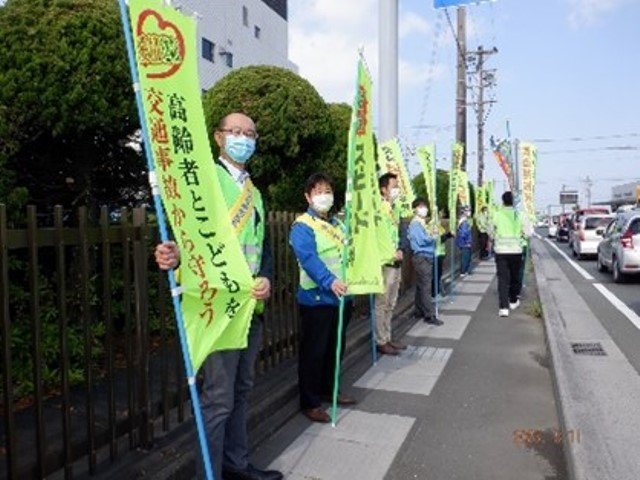 日に浜松市が主催する春の全国交通安全県民運動に参加し、流通元町交差点にて交通安全の啓蒙活動を行いました。